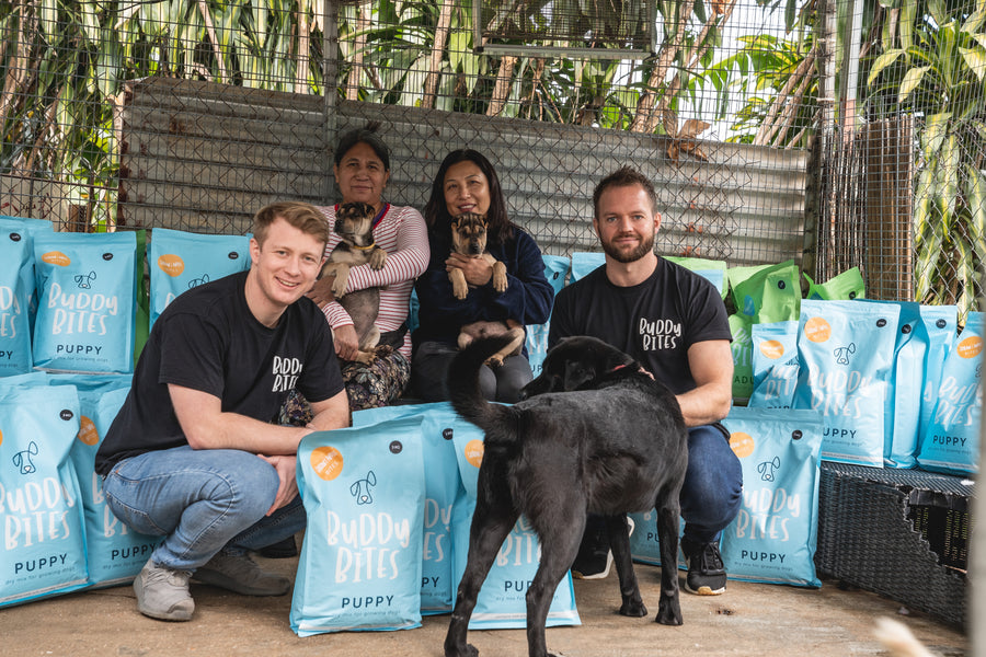 We know what you are thinking, 'why did these people start a dog food brand', and as importantly, 'why am I reading about it.' The first part is simple. We knew first hand the challenge of getting truly good quality dog food, consistently. We also knew the challenges that dog shelters go through. So, we created Buddy Bites to fix both these issues...To ensure Nacho and Nala (Chris' dogs) could eat food their guts deserve, whilst feeding their friends in shelters with every order. As to why you are reading it, we are not sure, but we certainly hope it's because you have a dog, and even more so that you're going to join the many pups moving to Buddy Bites!