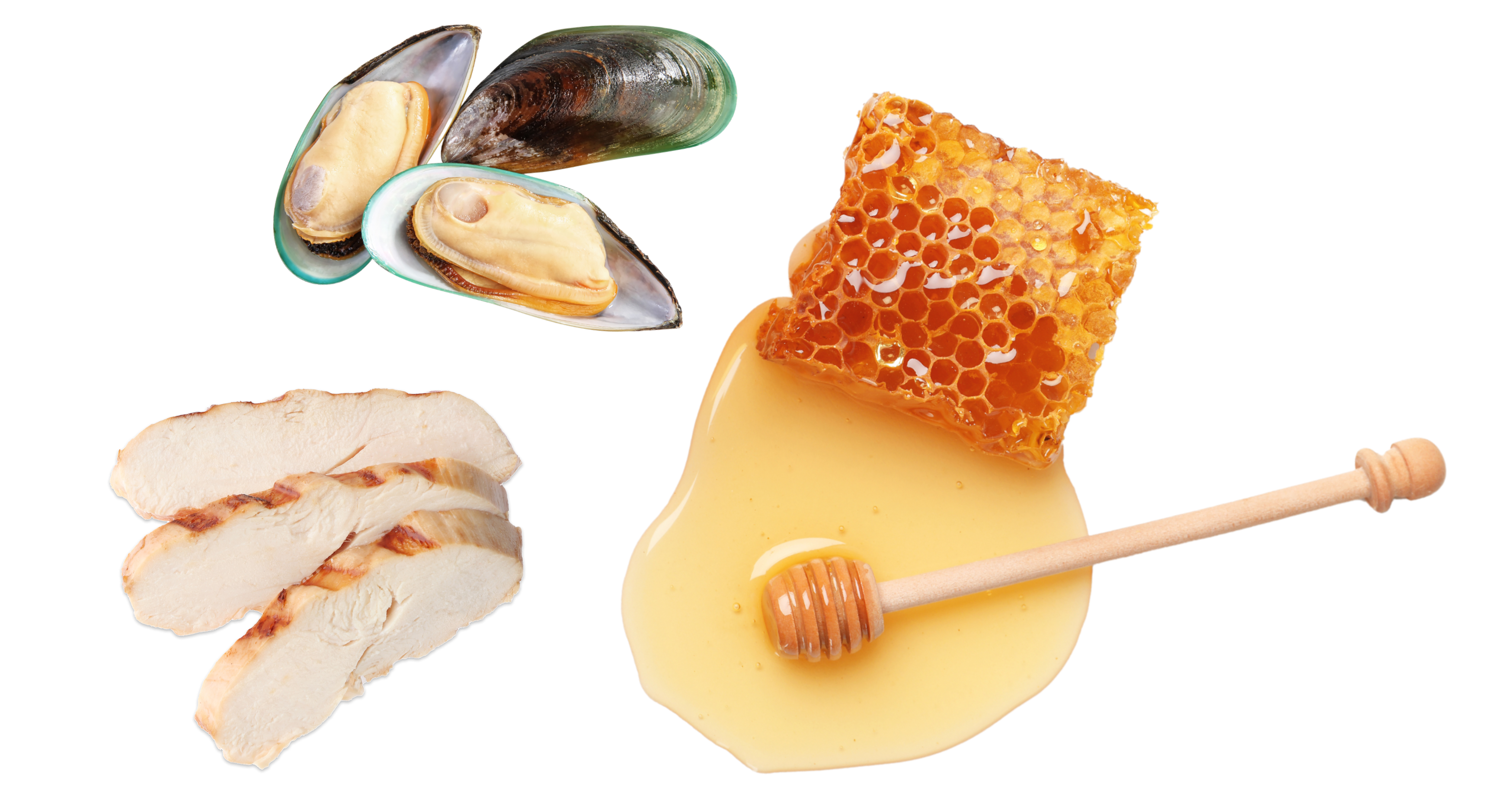 Chicken (87%), Chicken liver (8%), Manuka honey, Green lipped mussels, vegetable glycerine, salt, natural antioxidant.