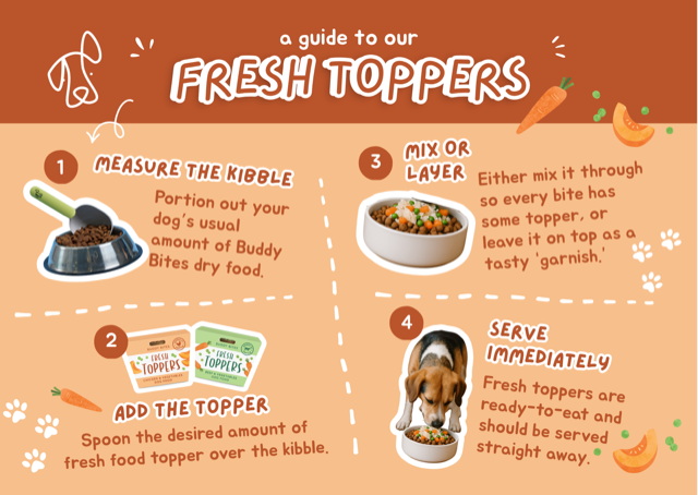 Our toppers are steam cooked to keep them both delicious and packed full of nutrients.