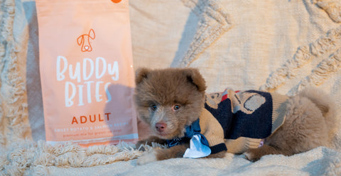 所有 Buddy Bites 狗糧均在歐洲製造,並符合美國AAFCO營養標準。您甚至可能看過創辦人其一Ryan 在試食Buddy Bites狗糧的短片,我們沒有要求他這樣做,只能說他有點古怪,但只想讓您知道我們所有食品都係絕對安全,可以進食的,是您值得信賴。