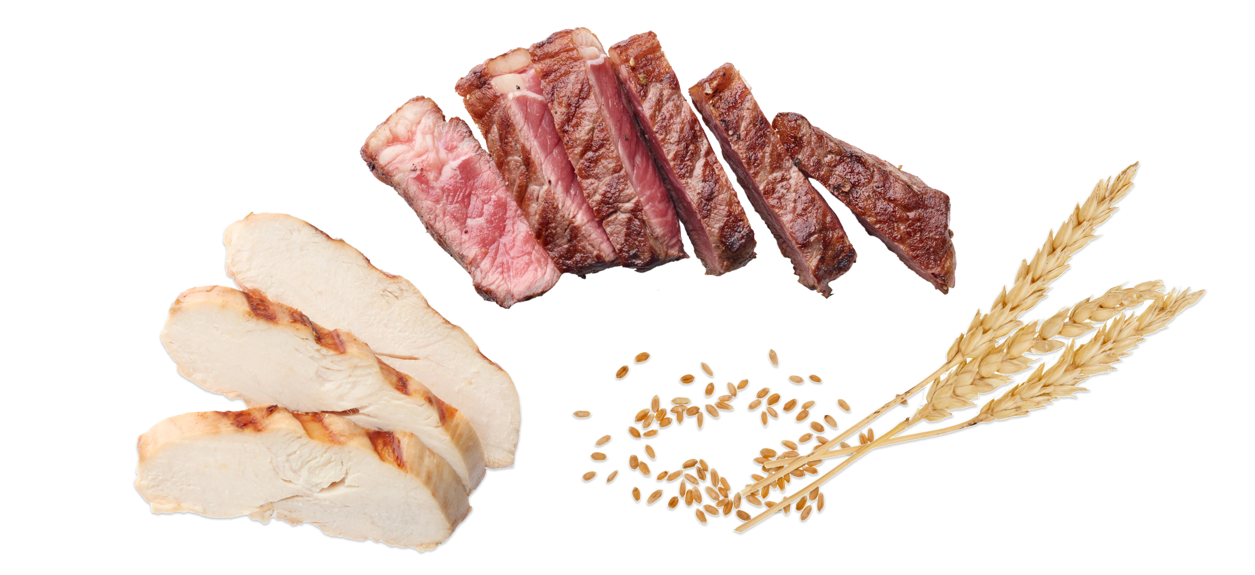 Dried Chicken, Dried Beef, Peas, Wheat, Rice, Vegetable Glycerin, Pea Fibre, Natural Flavour, Sodium Hexametaphosphate, Dried Carrots, Dried Blueberries, Vitamin A Supplement, Vitamin D3 Supplement, Vitamin E Supplement, Preserved with Mixed Tocopherol.
